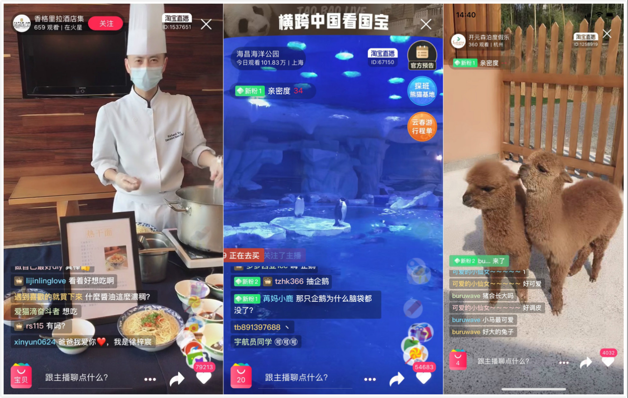目前,各大乐园、海洋馆等均处于闭园状态,但从 2 月中旬开始,上海海昌海洋公园就开始在淘宝、飞猪、新浪微博等平台上直播,让广大游客宅在家里也能畅游海洋、学习海洋知识。直播期间,海昌的主播小姐姐带领大家观看企鹅、海狮、海豹、白鲸、北极熊等海洋动物的生活状态,并进行专业的科普讲解。据统计,上海海昌仅 2 月进行的 10 场全网直播,总计观看量就已超 1600 万人次,覆盖用户超 8000 万人次。