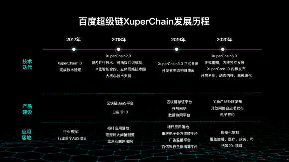 开源开放、共建生态是百度超级链长期坚持的战略。2017 年,百度超级链 XuperChain1.0 完成技术验证;2019 年,XuperChain3.0 正式开源,开发者生态初具雏形。