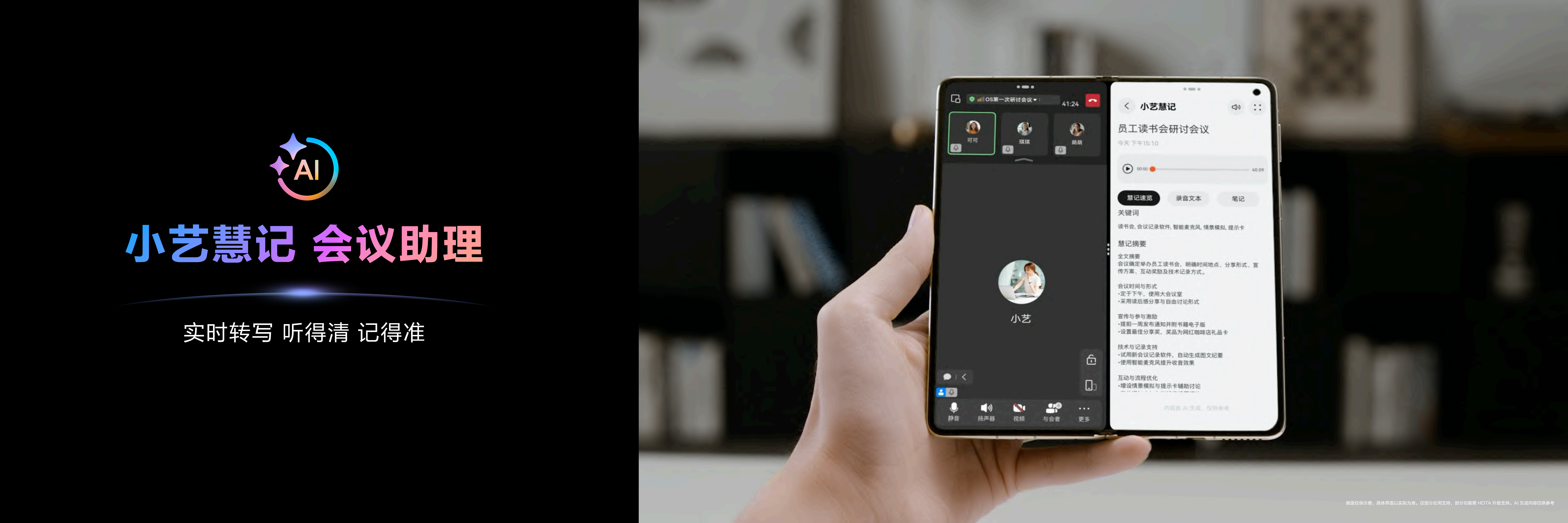 除了拥有 A2A 技能外,小艺在折叠大屏这一独特形态上还拥有更多技能,堪称是用户的工作、生活的全能助手。譬如其支持创新的 AI 图书功能,选择 AI 动态图书专栏的图书,用户盯着书中的插画超过半秒,静止的图画瞬间变成流畅的动态影像。分屏联动功能则让多任务处理变得异常简单——用户可以在屏幕一侧查阅资料,另一侧直接通过小艺搜索相关信息,实现「边看边搜」的高效工作流。而小艺慧记与文档对比等功能的加入,更是让设备成为移动办公的得力助手,无论是会议纪要的自动生成,还是不同版本文档的智能比对,都能轻松完成。