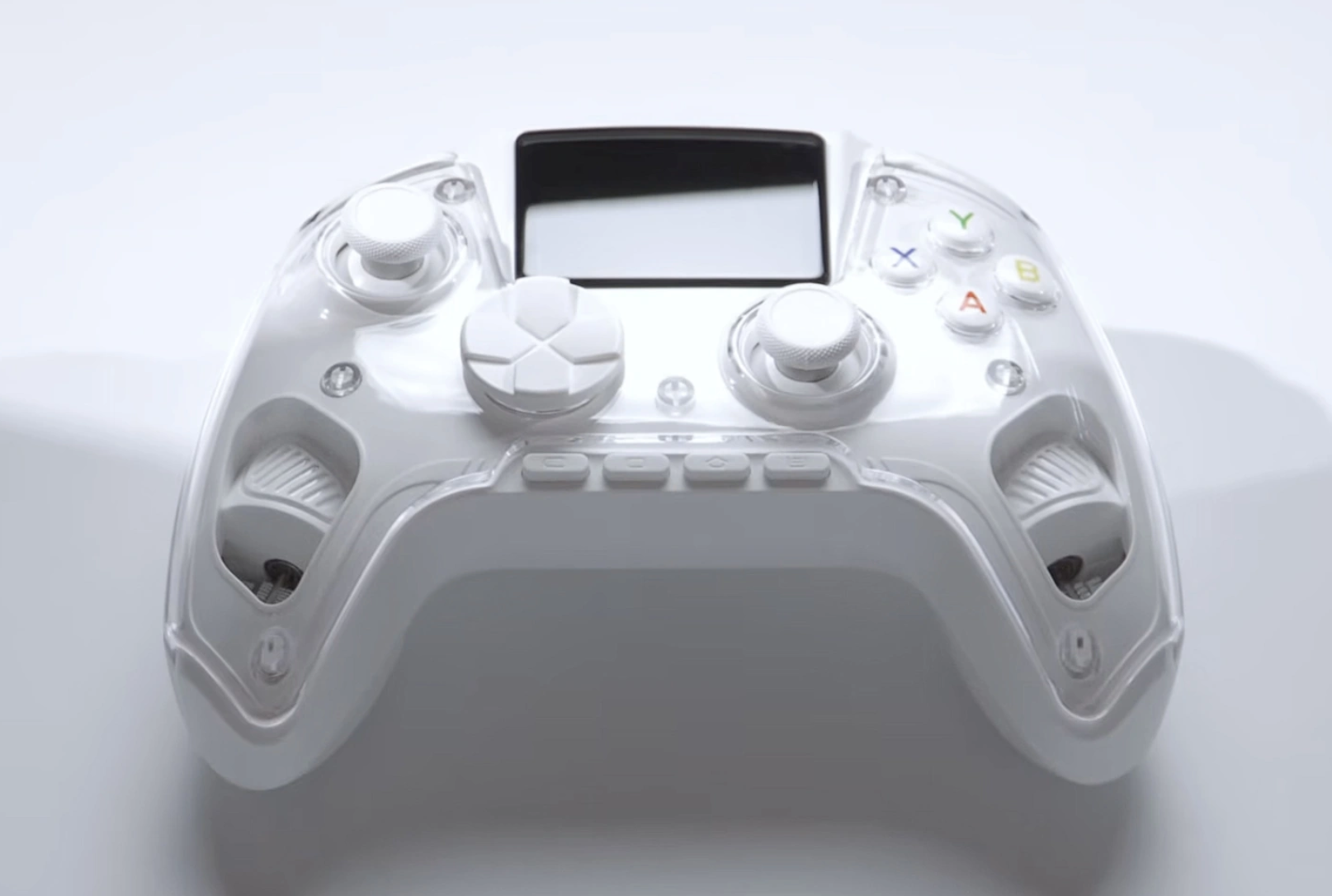 同时,这款手柄还在机身上加入了一块小尺寸 IPS 屏,可用于显示状态信息,左右两侧各配有一个心率传感器,可在玩家心率过高时发出预警,这一设计在游戏手柄中相当少见。