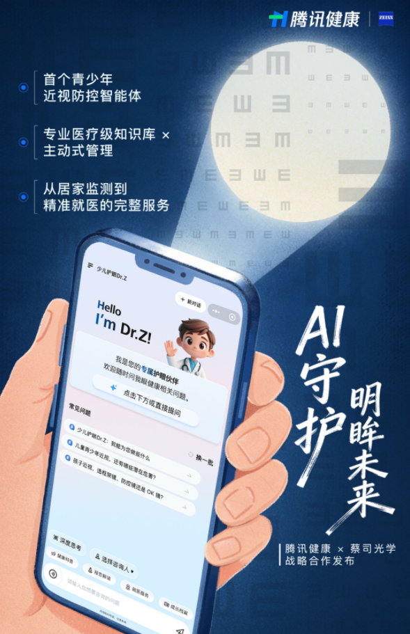 1 月 29 日,随着全国大中小学陆续进入寒假,视力检查与近视防控需求迎来年度高峰。腾讯健康与全球光学行业领导者蔡司光学宣布达成战略合作,正式推出「少儿护眼 Dr.Z」智能体。