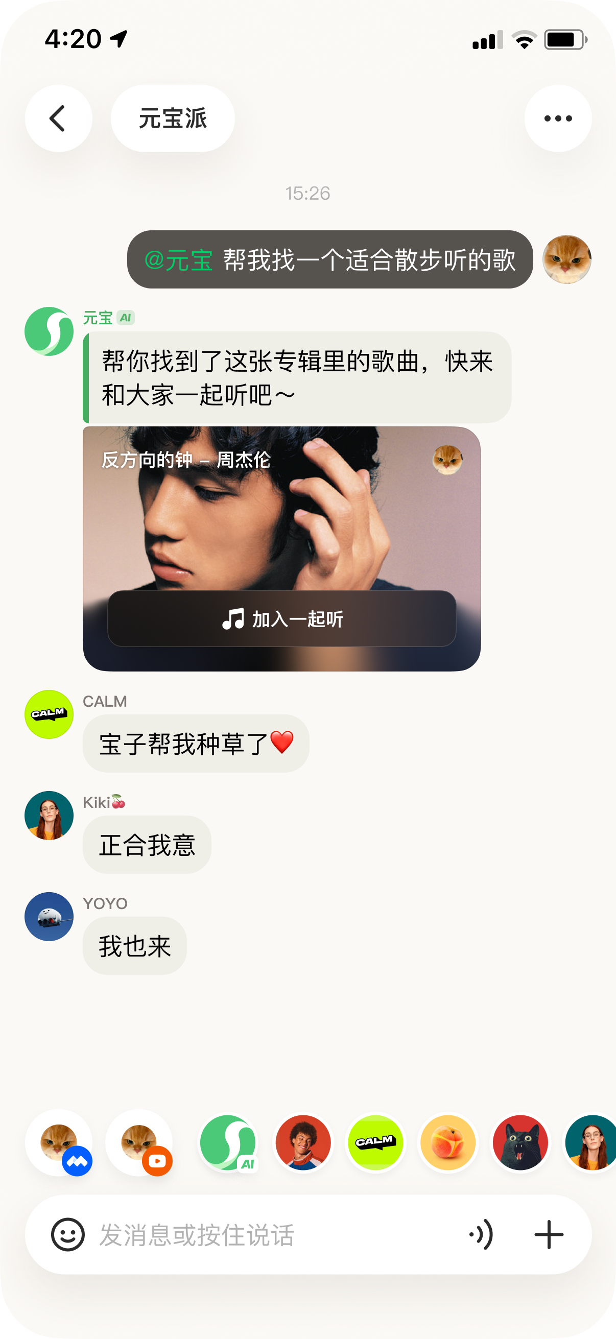 元宝派脱胎于腾讯会议里的AI探索与尝试,接入了腾讯会议行业领先的音视频底层能力。用户在派里,可以@元宝 播放一首歌、或者播放一部电影,也可以通过“一起看”和“一起听”功能入口,让派友们同步观看同一部电影或收听同一首歌曲,实时发表评论和感受。这个沉浸式共享体验,极大地增强了派友之间的连接和互动,让元宝派可以成为同好们的自留地,未来元宝派也有望持续接入、打通腾讯丰富的内容生态。让每个内容体验都成为一次独特的社交体验。