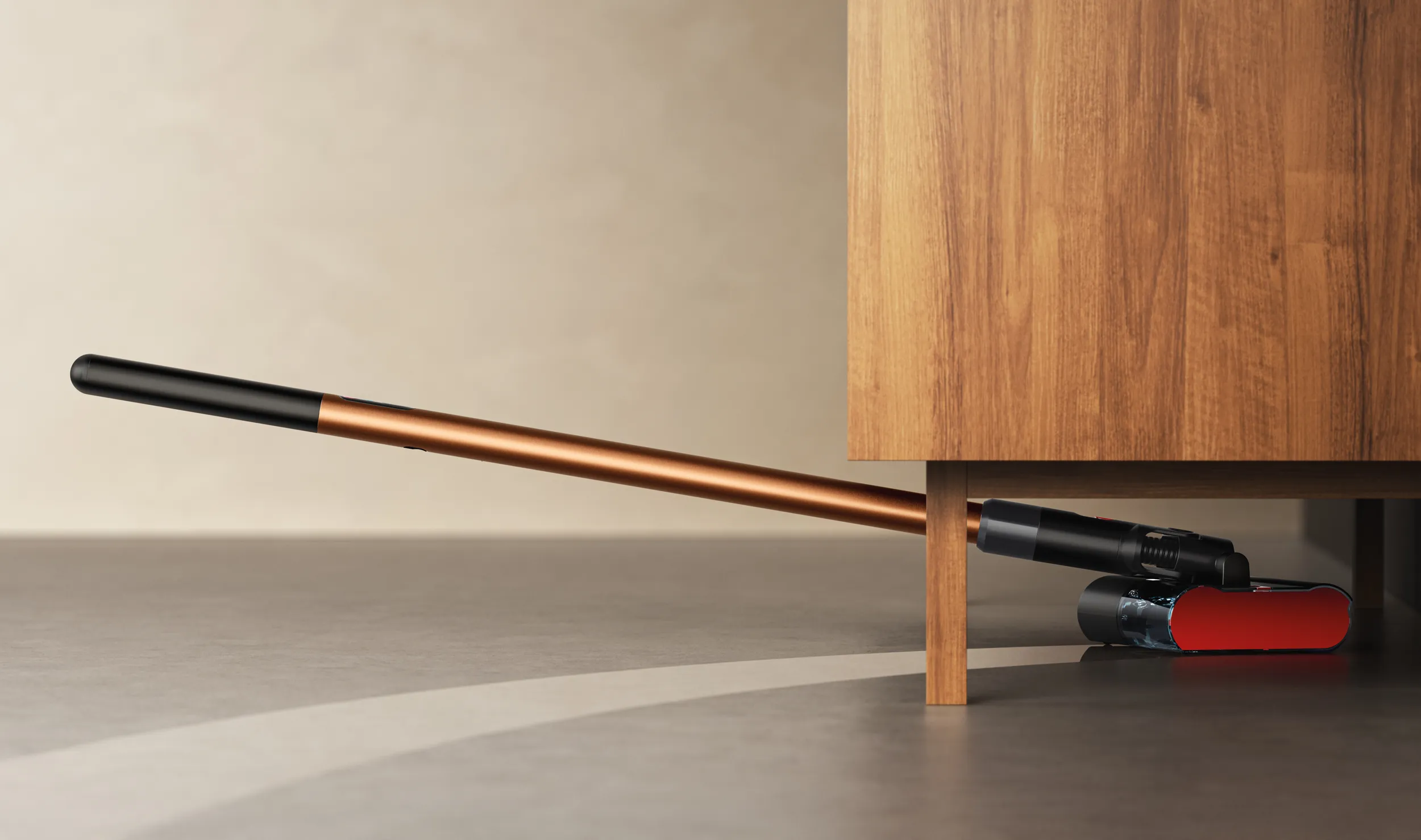 PencilWash 的一大卖点仍然是机身纤细与高机动性。其可旋转手柄几乎可以完全放平,使机身能贴地滑入沙发、床底等低矮家具下方进行清洁,解决传统立式洗地机难以深入的卫生死角问题。戴森强调,PencilWash 依托加压供水系统,将清水精准输送到滚筒上,通过高密度纤维结构完成擦洗,再将污水回收至污水通道,实现「前洗后吸」的一体化流程。