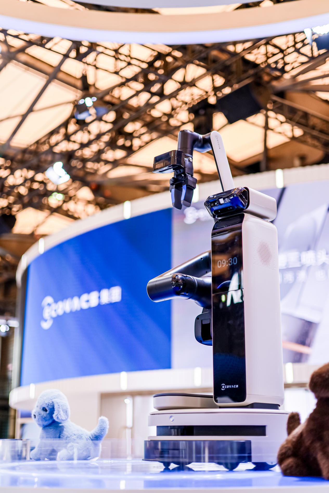 具身智能的核心,在于让 AI 拥有物理实体的承载,使其能够感知复杂的现实世界并进行类人、类生物的精准交互。在科沃斯展台最核心的具身智能展演区,前沿产品清晰勾勒出服务机器人从「工具」到「管家」再到「伴侣」的演进路径。