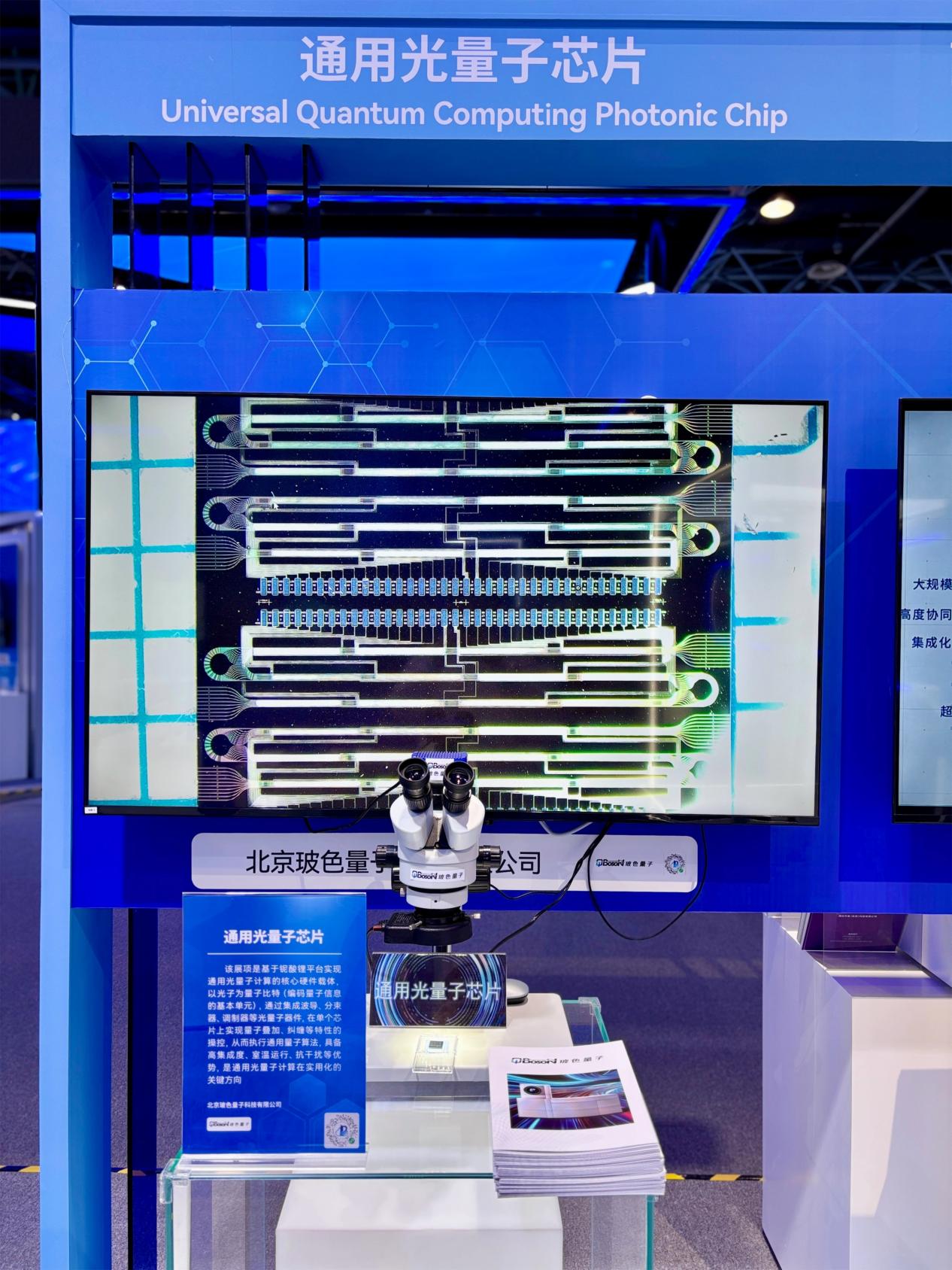 在通用量子计算领域,玻色量子已于 2026 中关村论坛推出自研的通用光量子芯片,突破在薄膜铌酸锂材料上的高速电光调制量子操控技术,实现多个高保真度的两比特和多比特量子纠缠逻辑门,验证叠加态、纠缠态制备能力,完成如量子神经网络、图像识别、化学分子基态能量求解等多场景量子算法,构建通用光量子芯片架构和技术路线。