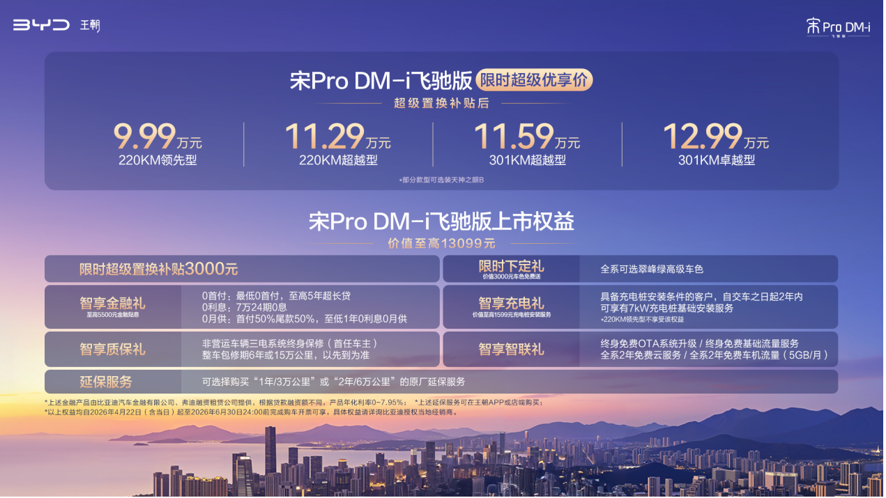买车,终究是买一份踏实与愉悦。宋 Pro DM-i 飞驰版用最硬核的技术,给出了最温柔的诚意,真正做到了让用户花小杯的价格享受到超大杯的快乐。今年最值得入手的 A 级 SUV,它不仅实至名归,更在科技平权的道路上,留下了浓墨重彩的一笔。