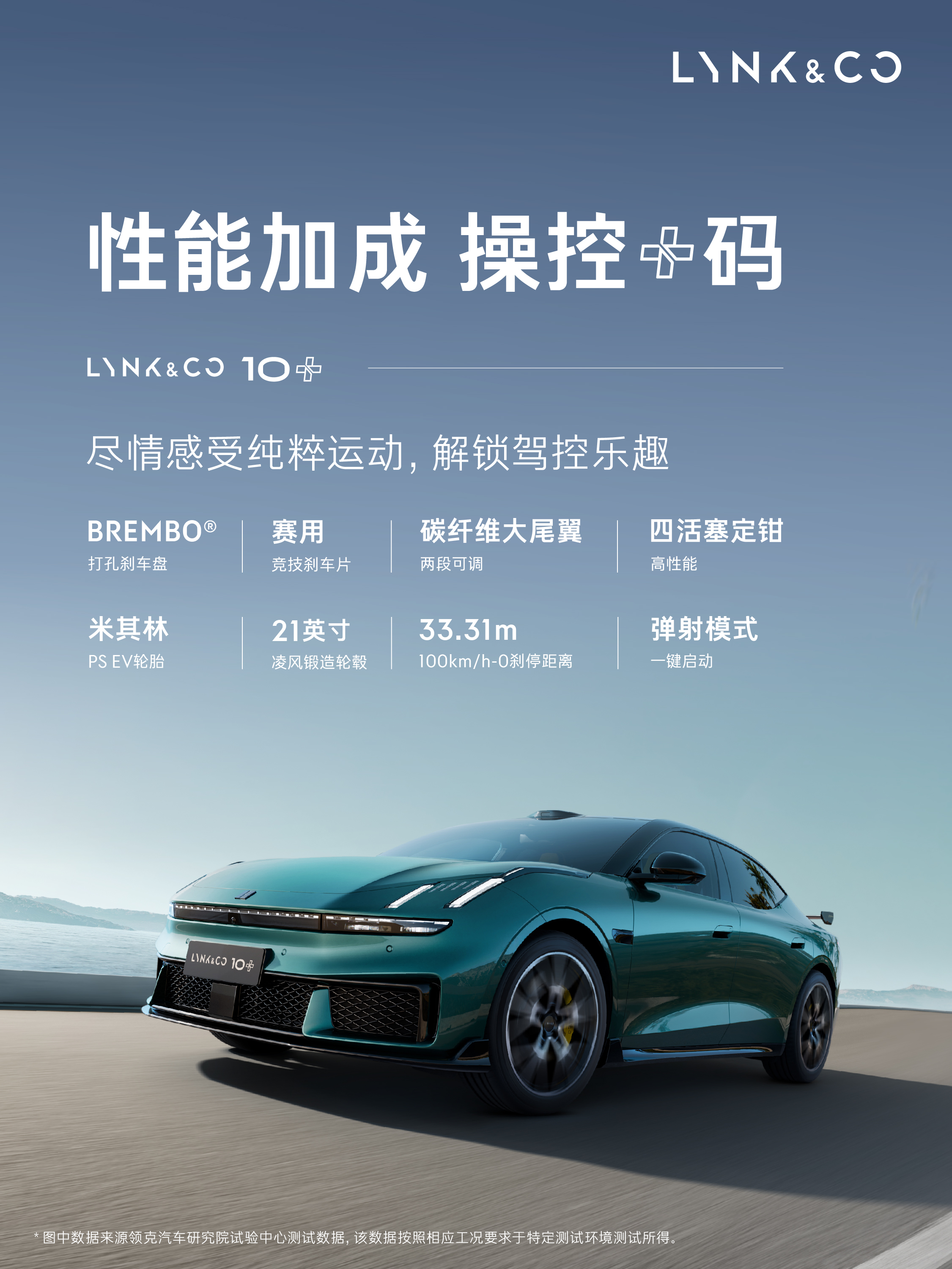 作为领克新能源的第一款“+”系列产品,领克10+更是将电动性能推向极致,搭载双电机四驱,最高功率680kW,最大马力925匹,零百加速仅需3.2秒。结合一键弹射模式、毫秒级自由扭矩分配技术与G-TCS智能防滑控制,匹配同级唯一的驭风可调碳纤维大尾翼与BREMBO打孔刹车盘、高性能四活塞定钳、赛用竞技刹车片,使其此前在亚洲山脊赛道圈速榜中,以1分40秒14的成绩,强势打破保时捷Taycan Turbo GT保持了9个月的纪录,登顶亚洲山脊赛道“弯道之王”,用硬核成绩印证了其比肩百万级纯电跑车的顶尖驾控实力。