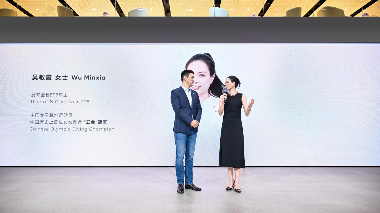 奥运冠军吴敏霞以全新 ES8 玄金特别版首位车主的身份,亮相本次北京车展蔚来展台,蔚来创始人、董事长、CEO 李斌亲自为她交付新车。在交付现场,吴敏霞表示,选择全新 ES8 玄金特别版,是因为它全场景出行从容省心,更象征着她切换赛道后的“第一金”。作为一台全场景科技旗舰 SUV,全新 ES8 兴业、怡家、悦已,已收获超十万名来自各行各业社会中坚力量的青睐。