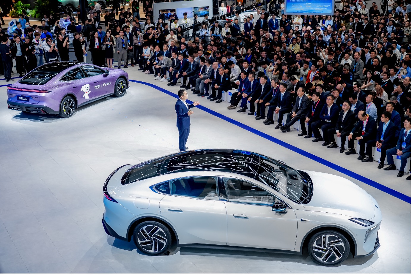 不是因为那面裸眼3D大屏——那类东西各家都有。让我停下来的,是展台左侧的技术展区:百万台下线的电驱总成、L3自动驾驶专用号牌、金钟罩电池剖面……它们被并排摆在那里,像是一份四年账单的摘要。