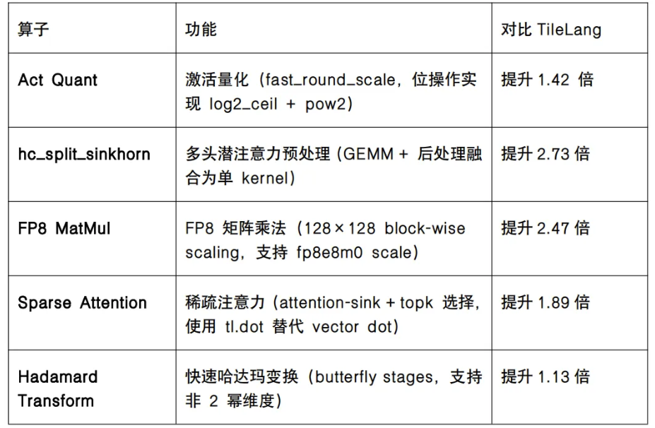 为了支持更多AI芯片的使用,FlagOS对DeepSeek-V4-Flash中使用的新算子使用Triton语言进行重新实现,基于FlagTree统一编译器,性能全部超过原生性能。