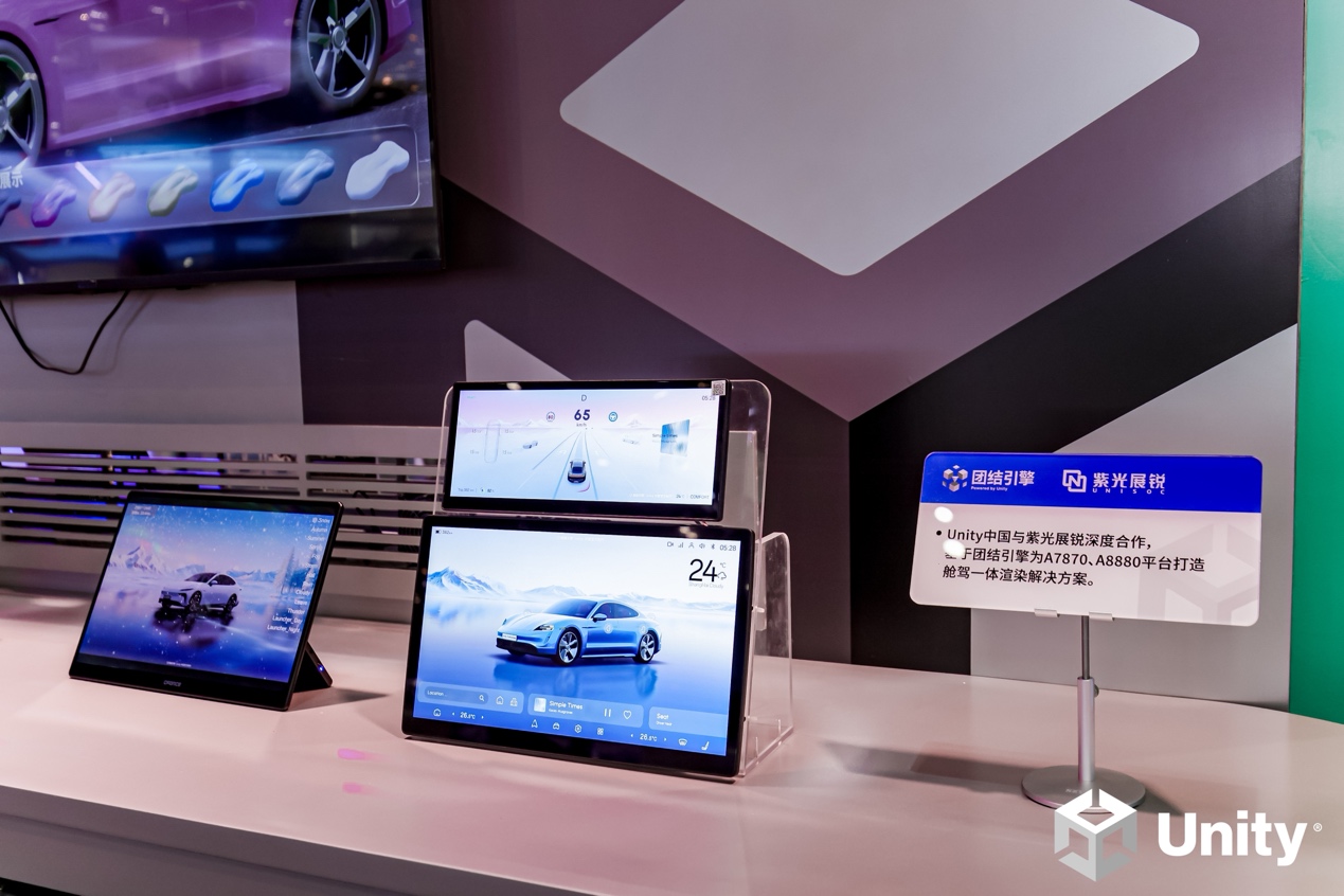 - Unity 中国与紫光展锐依托其车规级芯片平台与团结引擎的 3D 渲染优化能力,联合推出轻量化舱驾一体方案,使高品质 3D HMI 得以在中高端算力平台上稳定运行。