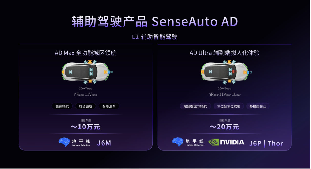 一项顶尖的技术如果只能存在于昂贵的旗舰车型上,其产业价值将大打折扣。商汤绝影显然深谙科技平权的商业逻辑。R-UniAD 2.0 被设计为一个统一的智能底座,能够无缝适配从 L2 级辅助驾驶到 L4 级自动驾驶的不同需求,并展现出极强的芯片兼容性。基于这一底座,他们推出了面向 10 万级大众市场的 AD Max 方案,通过纯视觉加雷达的配置实现高速和城区的领航辅助;同时也有面向 20 万级市场的 AD Ultra 方案,通过引入激光雷达和高阶算力提供更加拟人化的智驾体验。这种清晰且务实的产品矩阵,大幅降低了高阶智驾的研发与落地成本。