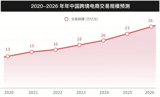 跨境电商蓝海一片,可开发机会多。目前继续保持增长趋势,交易规模持续扩大,未来将是中国产品出海的最佳时期。据权威数据显示,到2026年,跨境电商交易规模将达到26万亿元左右。