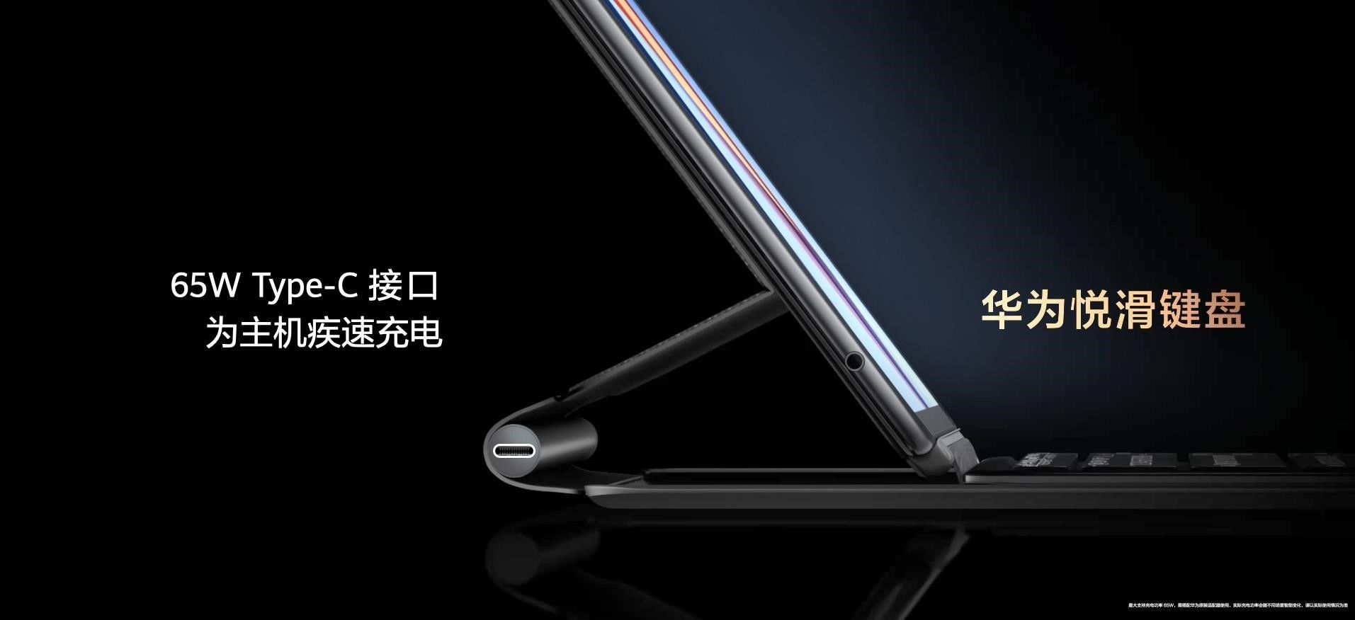 值得一提的是,发布会上华为首次提出创新滑轨键盘设计,推出了一款适用于 MateBook E 的「悦滑键盘」,带来四大设计上的改变。它拥有更大的触控板与 NFC 感应面积,大大提升生产效率;配备一个 Type-C 接口,支持 65W 充电功率,同时给主机、键盘进行充电;阶梯型键盘背光灯不仅满足了用户在弱光环境下的使用需求,也给日常办公增添一份仪式感。127°屏幕支撑角度以及稳定性很好的膝上办公,支持单手开合,随时随地开启高效办公状态。
