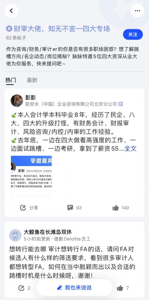 更多精彩问答可前往脉脉职言社区, 搜索 # 财审大佬, 知无不言——四大专场 #。