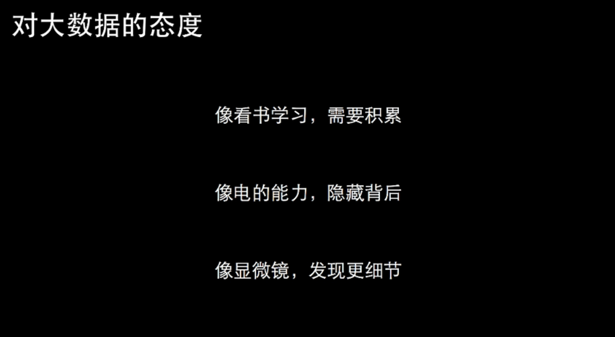 - 极致魅力,不确定性——大数据很多时候解决的是非精准结果的问题。