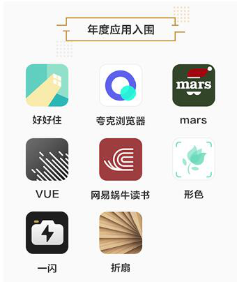 异想 App Show 盛典将公布 2017 豌豆荚年度设计奖获奖结果,目前入围年度应用的 8 款 app 分别是『VUE』、『折扇』、『好好住』、『夸克浏览器』、『一闪』、『网易蜗牛读书』、『形色』、『mars』。精选的入围应用,需要符合设计奖的标准结合功能、内容、创新、设计四个维度。