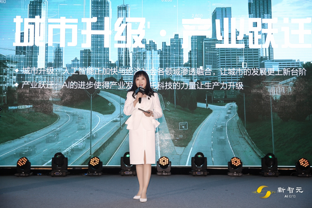 新智元创始人兼 CEO 杨静女士在大会开幕致辞中指出:进入 2018 年,「城市升级,产业跃迁」成为中国人工智能发展的主旋律。人工智能正加速社会经济各领域渗透融合,AI 让城市的发展上了一层台阶。