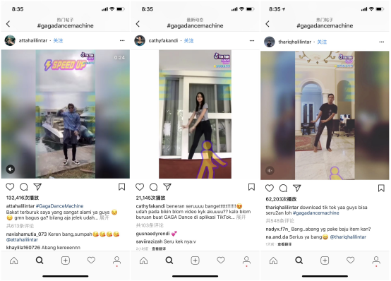 此外,Tik Tok 在东南亚的走红也与优秀的产品体验和强劲的技术支撑密不可分,例如此前在国内推出的新功能「尬舞机」在 Tik Tok 上一经登陆便引起广泛追捧,在 Instagram 等海外社交网络产品上,不少用户都在大量分享玩尬舞机的视频。抖音的产品负责人王晓蔚认为,从 Tik Tok 在海外的实践来看,外国用户同样希望通过短视频来更好地自我表达,而 Tik Tok 强大的特效功能恰好满足了他们的需求。