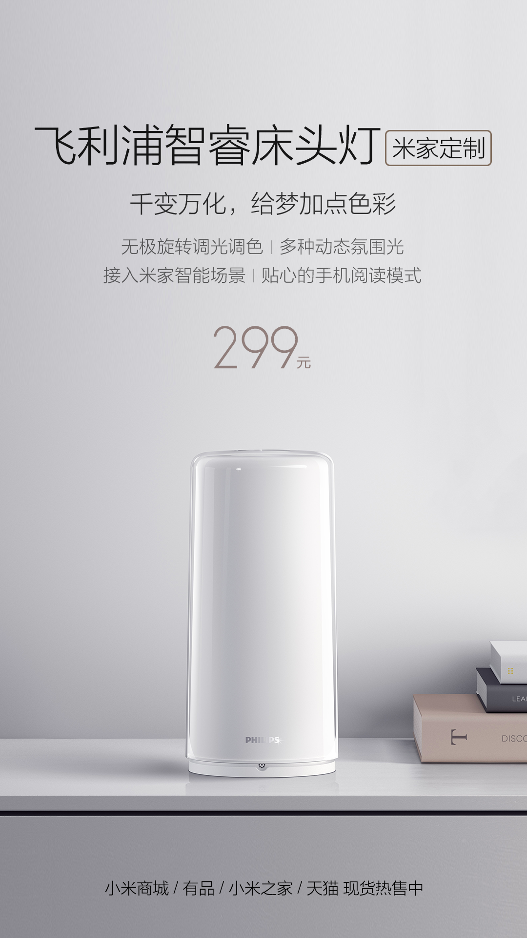 米家定制 飞利浦智睿床头灯发布售价 299 元。