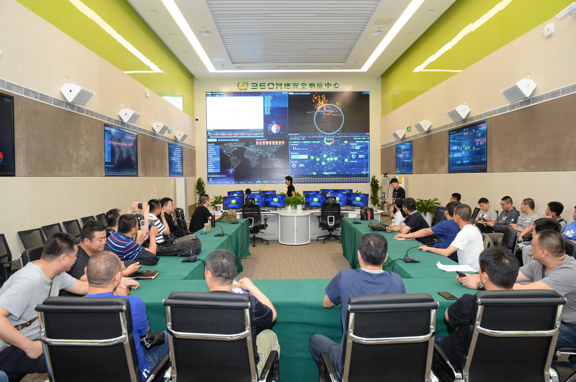 上午,各位领导及公安干警们到访之后,首先参观了 360 公司的办公环境,包括充满人文关怀的「南瓜屋」,还有充满科技感的 360 网络安全响应中心等。