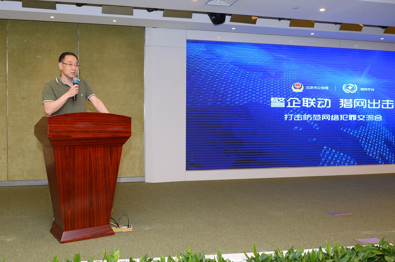 下午,北京市公安局刑事侦查总队副总队长臧学民,北京市公安局网络安全保卫总队副支队长海涛做了重点发言。他们表达了对此次交流会的高度赞赏,尤其是猎网平台和 360 的大数据技术,在未来将会是警方打击网络犯罪工作中重要的辅助工具之一。