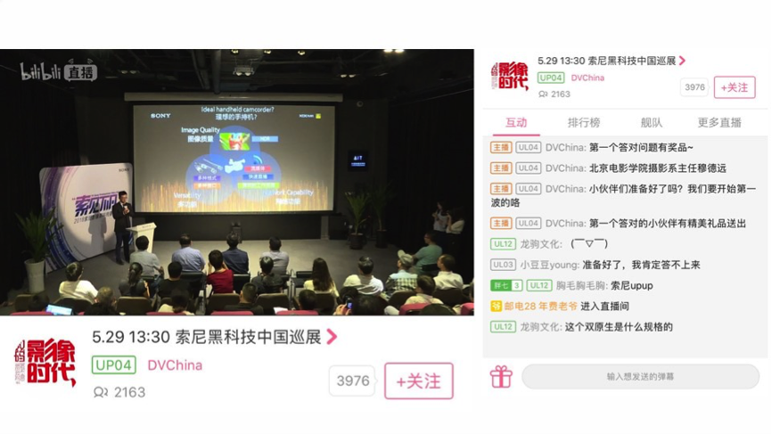本场“索”见不凡——2018索尼影像黑科技嘉年华(北京站)暨启动仪式还通过一直播和B站进行了网络同步直播,直播抽奖、精彩问答等环节也增强了本场活动的互动性,场外各位观众也能身临其境地领略到索尼影像黑科技打造的“索”见不凡。
