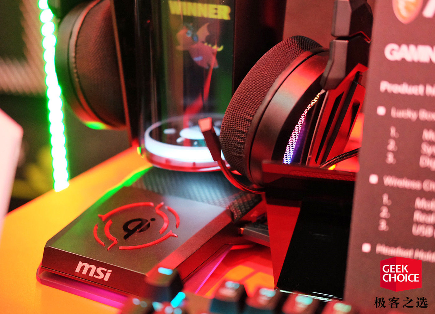 除了以上我们讲到的几个点,微星 GPS 更具实际使用价值的地方在于,它可以支持 Qi 无线充电,在你打游戏的时候也可以很方便的通过它来为手机充电。