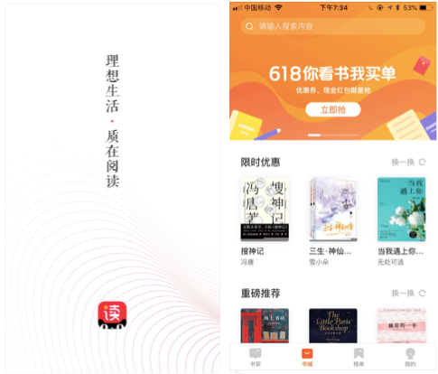 目前,天猫读书 APP 已经在 IOS 端和 Android 端上线。首期上架数万本电子书涵盖儿童文学、畅销小说、社科生活、经管理财、职场励志等热门领域。同时,天猫 618 期间,每天发放最高 20 元的无门槛优惠券,实现数万本电子书免费读。