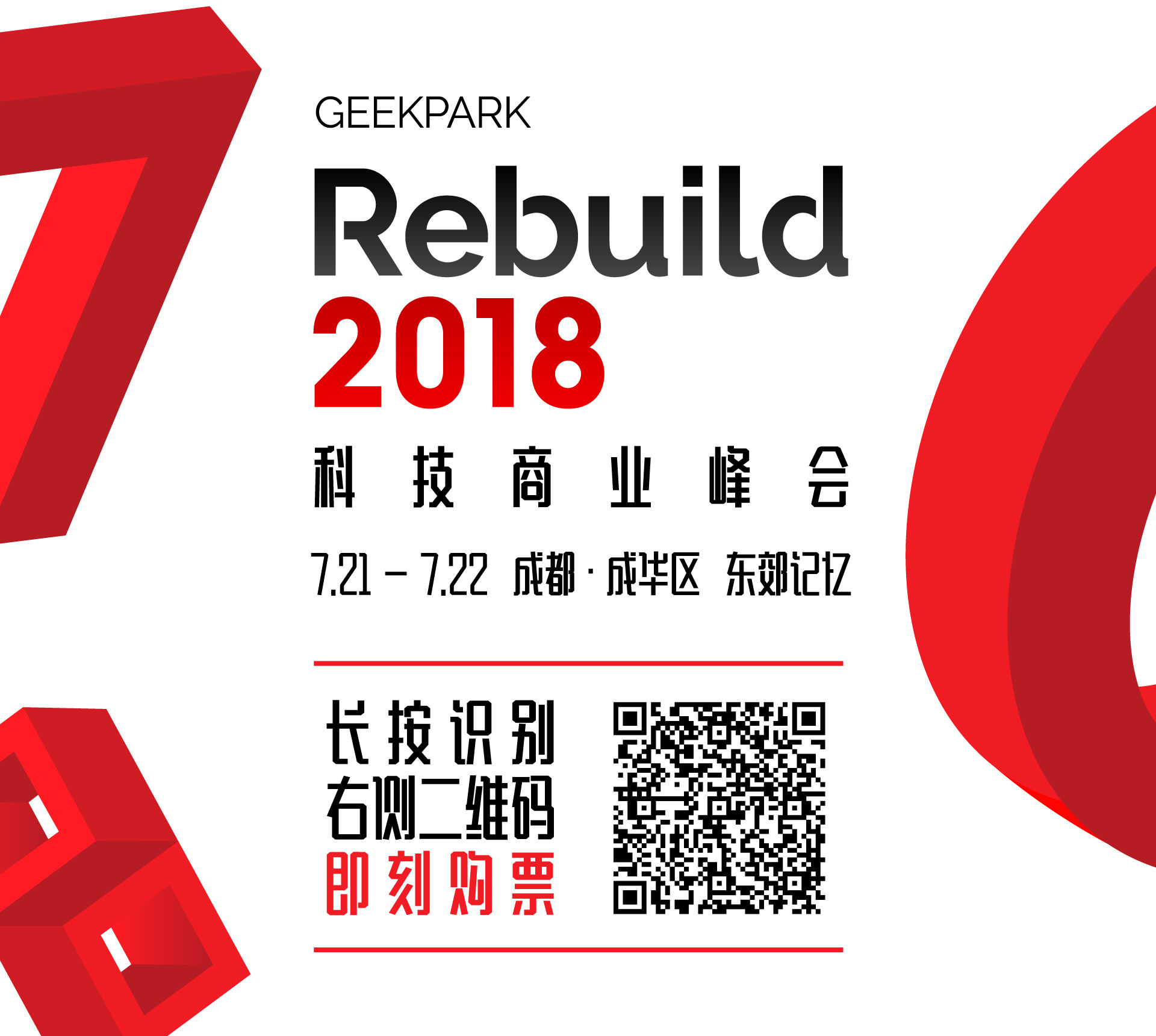 2018 年 7 月 21-22 日,极客公园将在成都市成华区·东郊记忆举办一年一度的 GeekPark Rebuild 大会。