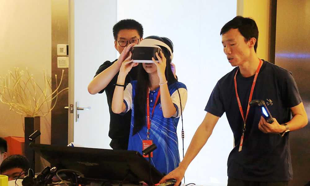 这次交流的代表团也是从全球 400 所高中面试筛入选的尖子生。现场青年营同学也在和夏令营高中生互相切磋战术。澳门的学生李乐程则对机械人技术深感兴趣,他说:「在学校内已有试玩机械人,这次在青年营里接触到无人机令我大开眼界,希望能带返澳门加以推广。」