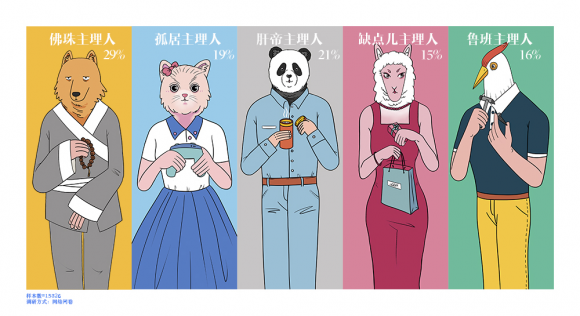 调查结果显示,在这群年轻租客样本中,「佛系」占 29%;「鲁班动手派」占 16%;「拼命赚钱氪房族」占 21%;独居女孩占 19%;「总觉得家里缺点啥」的租客占 15%。