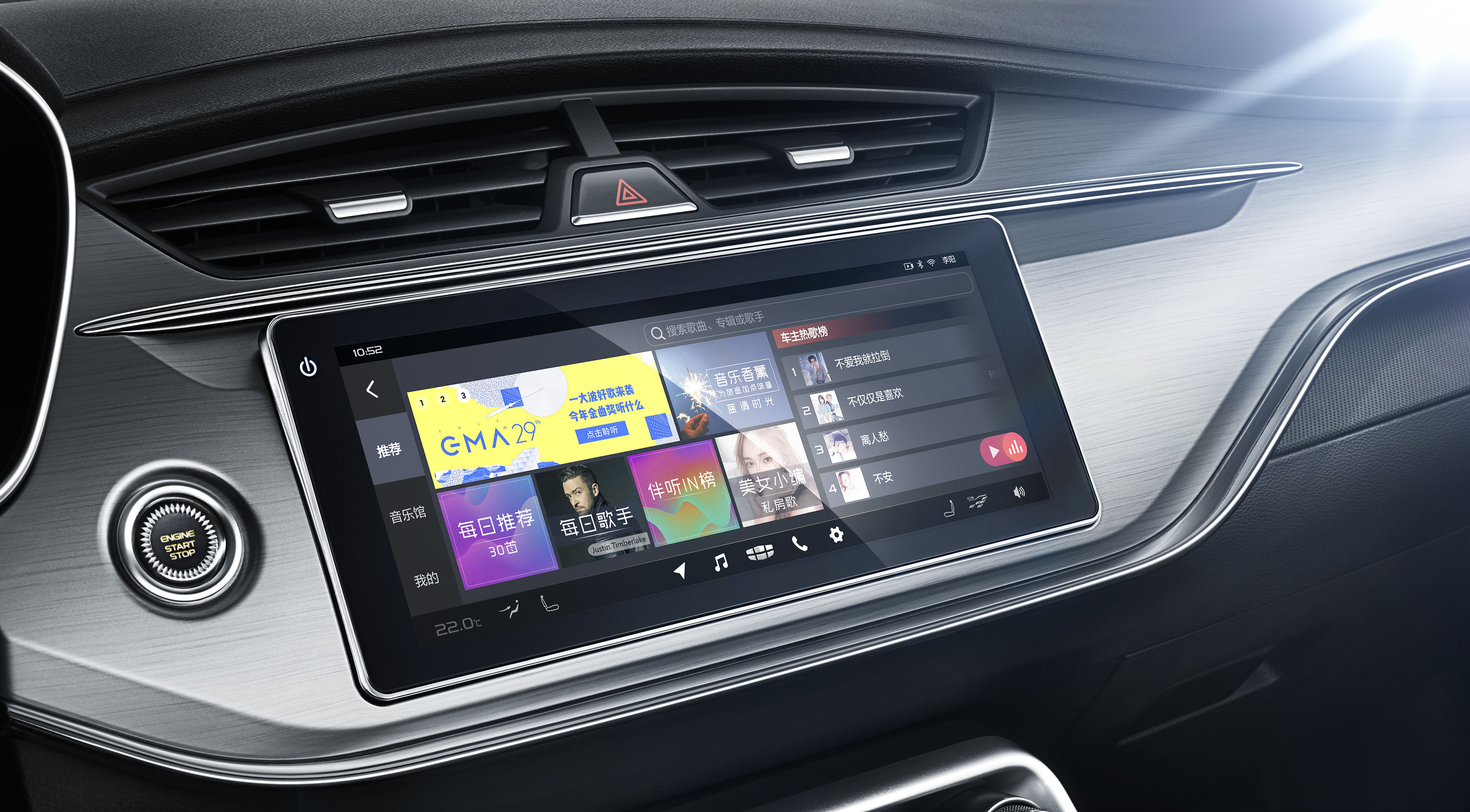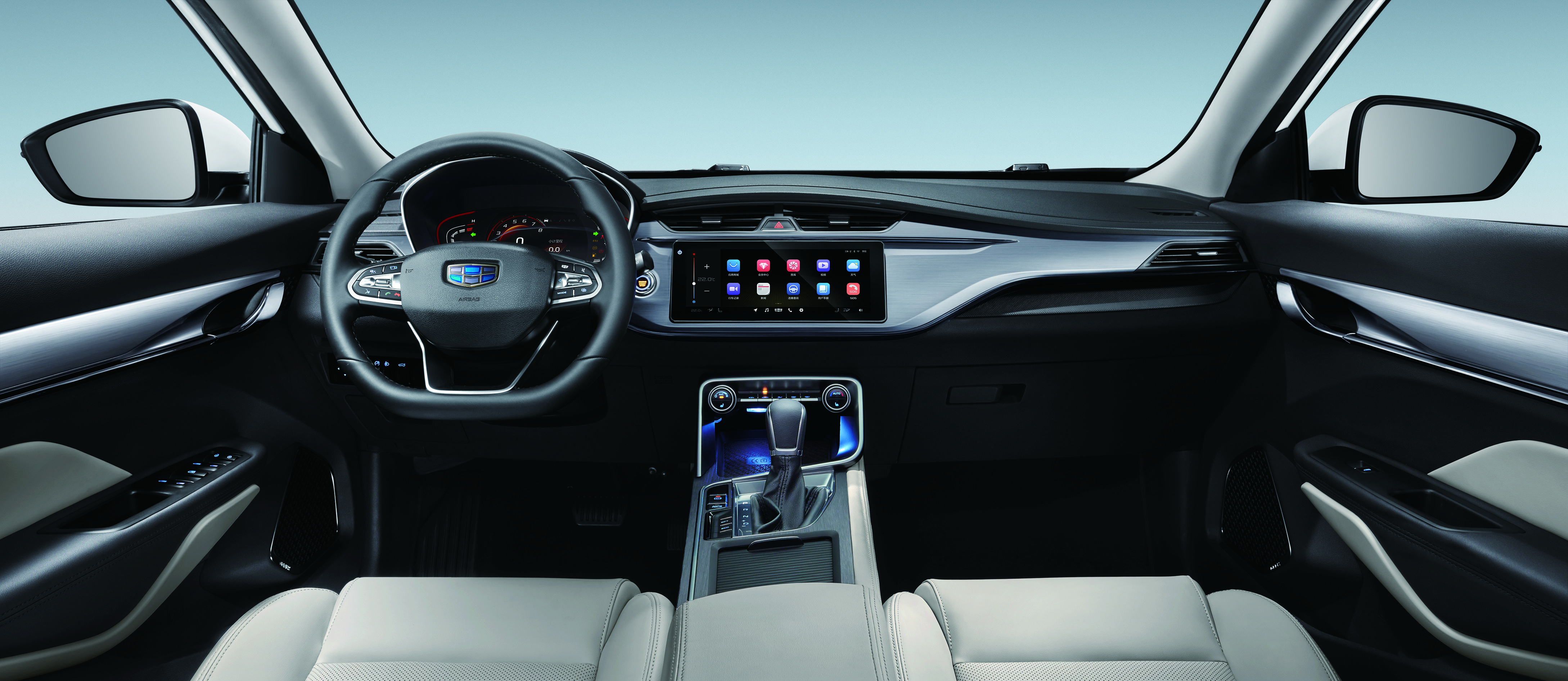 (GKUI 吉客智能生态系统)在舒适配置上,吉利缤瑞配备了全自动恒温空调、PM2.5 监测及自动净化系统以及带有负离子发生器的 AQS 空气质量管理系统,怠速噪音低至 37 分贝,营造出安全又舒适的驾乘空间。同时,考虑到年轻人的用车习惯,缤瑞还在中控台下方设置了手机无线充电舱。