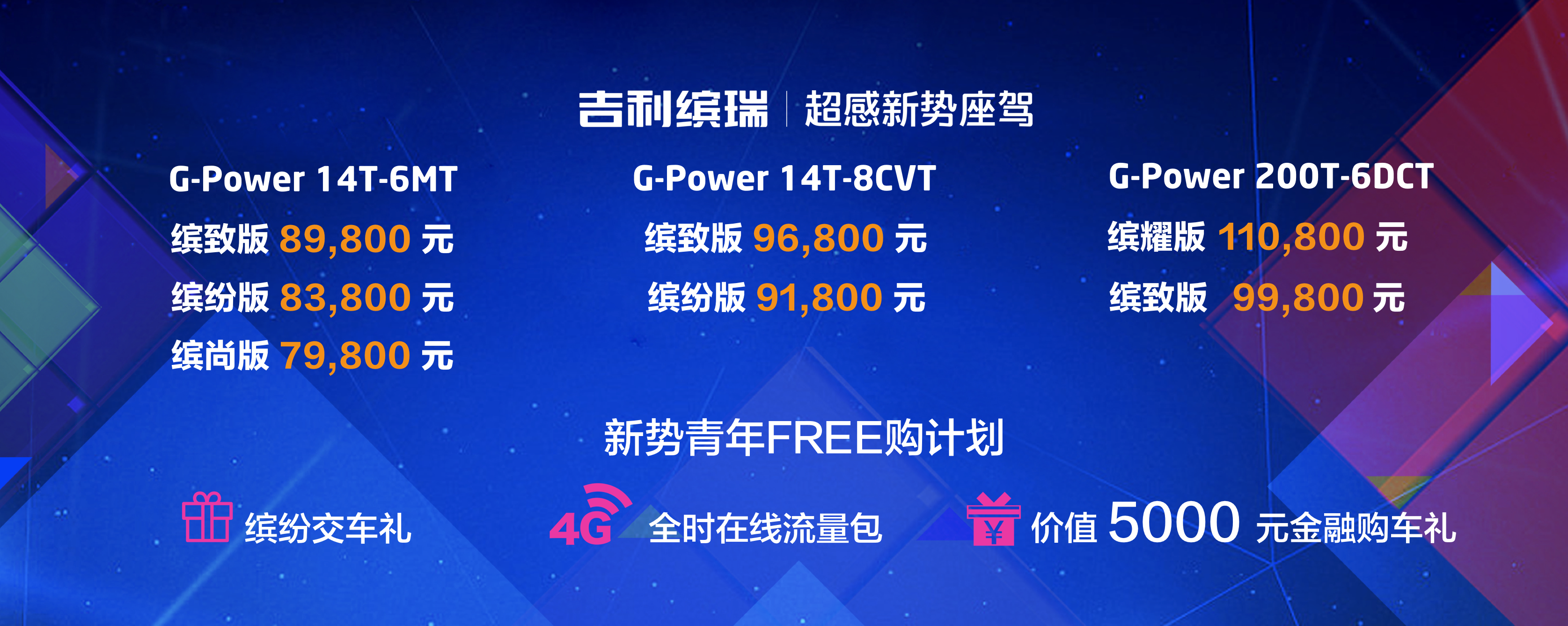 同时,吉利汽车还推出了「新势青年购车计划」,凡购买吉利缤瑞的用户均可享受专属缤纷交车礼、2 年免费 4G 全时在线流量包以及最高 5000 元的金融购车礼。