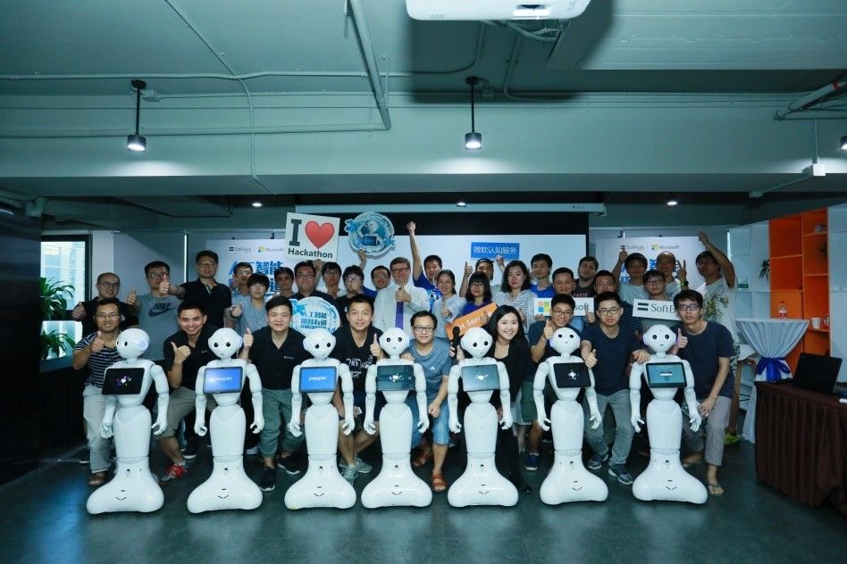 软银机器人举办 Hackathon,第一场于 9 月 11 日-13 日在微软北京总部,第二场于 9 月 19 日-21 日在深圳 InnoSpace,中国各行各业的 AI 机器人領域精英聚集在一起,用软银人形机器人 Pepper 和微软 Azure 人工智能服务,将「软」「硬」结合,探索着未来机器人应用的各种可能,真真切切的是一个颜值与才华兼具的应用落地。