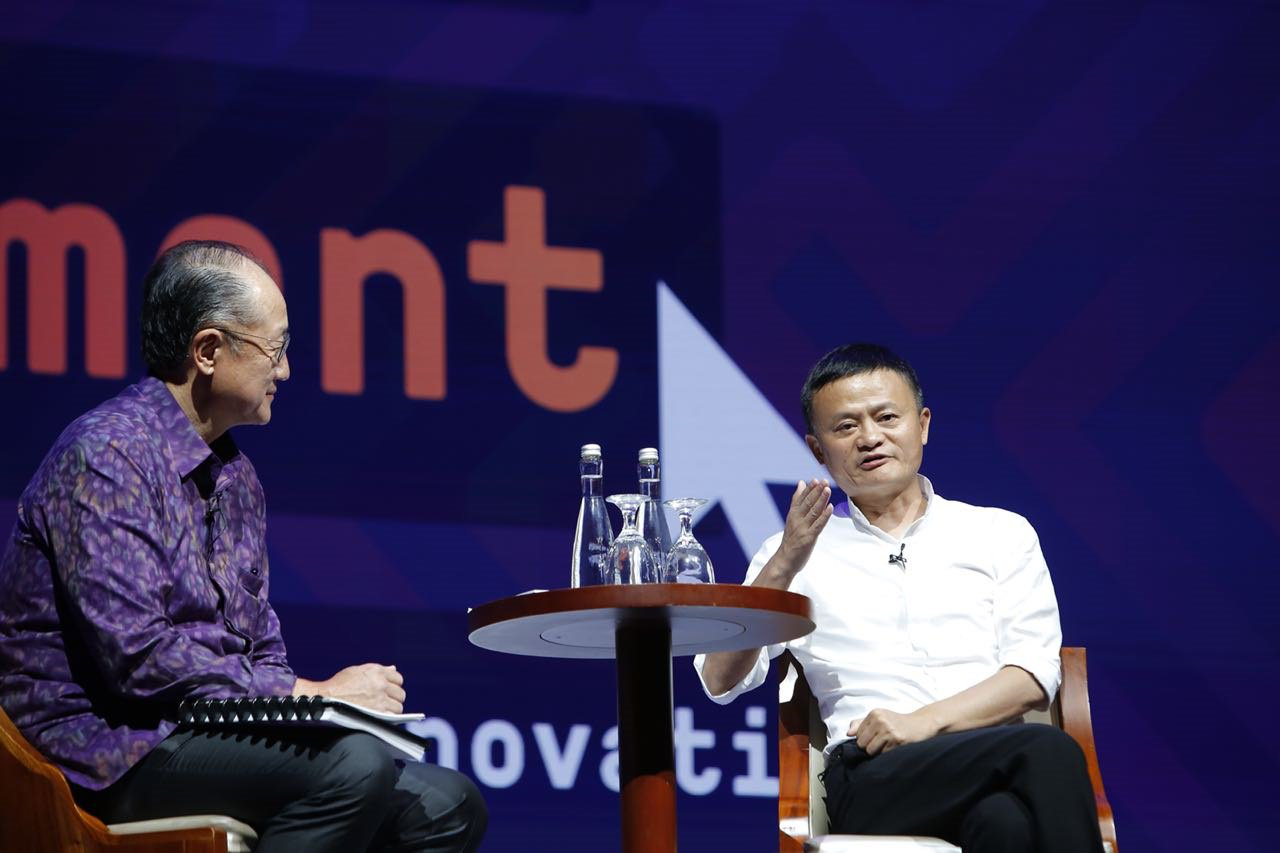 头图:世界银行行长金墉和阿里巴巴董事局主席马云进行「数字平台和创新如何改变发展中国家未来」的对话