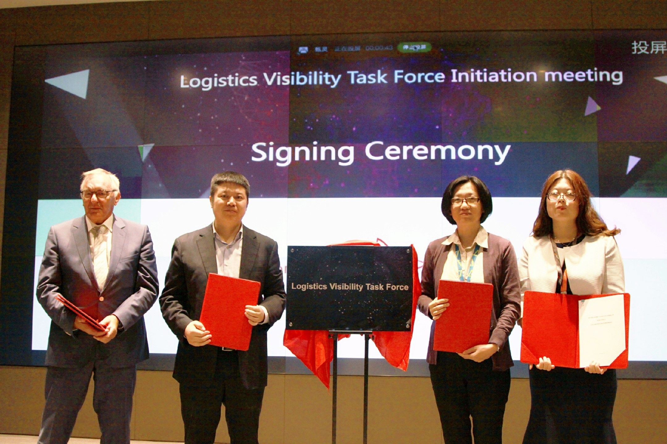 菜鸟网络 CTO 谷雪梅、阿里巴巴集团标准化部负责人朱红儒与 LOGINK 管理中心总监戴建锋、IPCSA 主席 Hans Rook 和秘书长 Richard Morton 共同为「国际物流可视化任务组」揭牌并签署合作协议,来自德国汉堡港的 Dakosy、荷兰鹿特丹港的 Portbase、比利时的安特卫普港、马来西亚的 DAGANET 等国际物流信息服务平台的专家参与会议,并见证了揭牌和成立仪式。