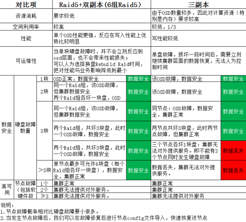 以下我们以一个 3 节点集群,单节点采用 4U36 盘位设备为例,针对各项指标对比分析如下: