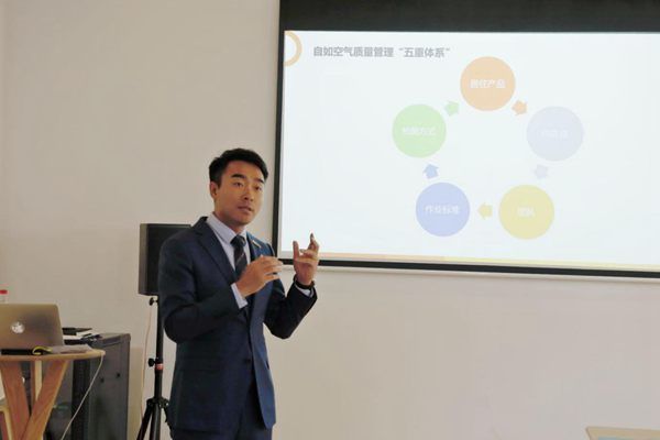 图:自如品质管理中心负责人刘秋实介绍自如空气质量管理「五重体系」