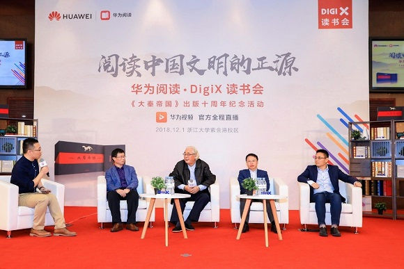 12月1日下午,“华为阅读·DigiX读书会”在浙江大学紫金港校区举行。本次活动特邀西北大学中国文明史研究院院长、《大秦帝国》作者孙皓晖与现场嘉宾、花粉及浙江大学师生一起畅聊中国文明史,感受历史的力量……