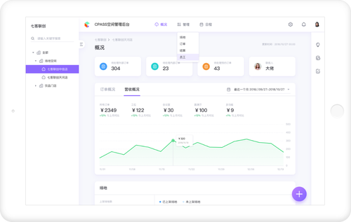 CPASS 提供强大的空间管理后台系统,可采集空间全方位的数据,实时查看空间状态,更利于场地服务方对场地的了解,提升场地资源的流动性;同时配有一套精细化的运作流程,可以大大提高运营效率,让订单、收益、报表等数据清晰可见。