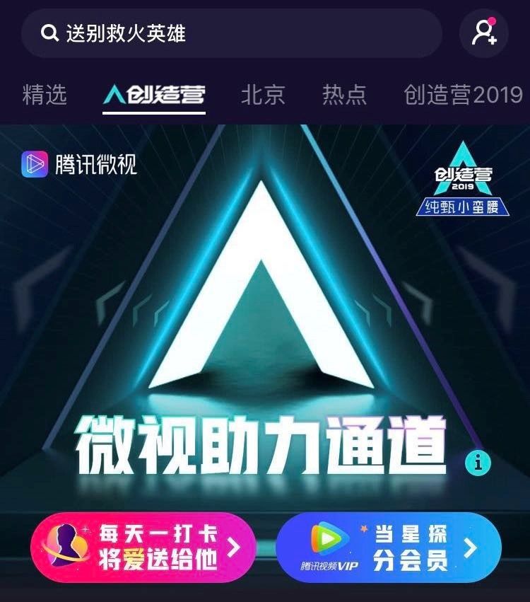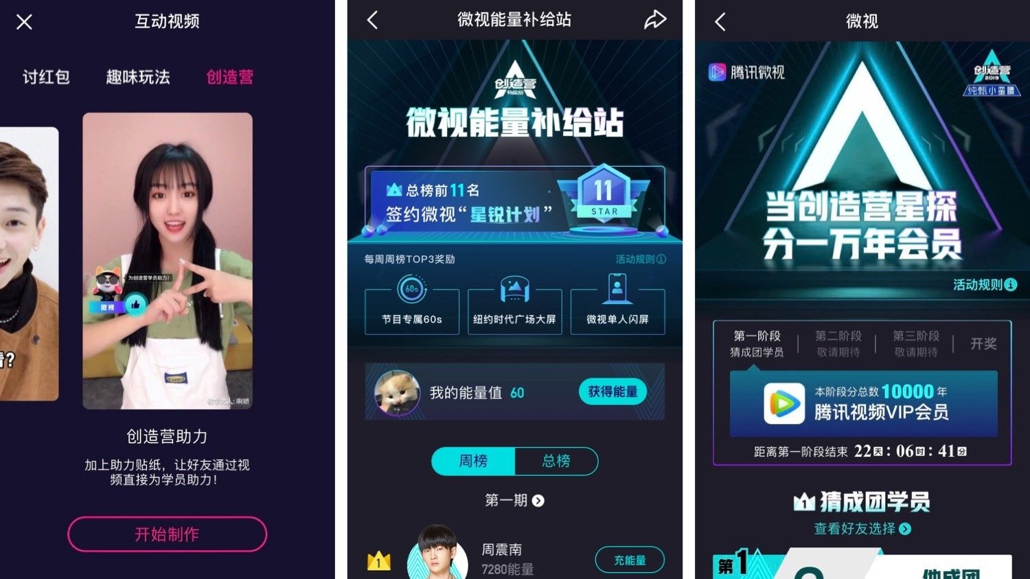 在万千男团创始人的期待中,腾讯视频出品的大型青年团训节目《创造营 2019》于近期正式播出。作为腾讯旗下互动视频创作与分享平台,微视此次牵手《创造营 2019》推出了「创造营助力」互动视频玩法,并启动「能量补给站」、「当星探 分万年会员」等丰富的站内活动,通过互动视频个性化、立体地展示学员,全方位助力《创造营 2019》学员成团。
