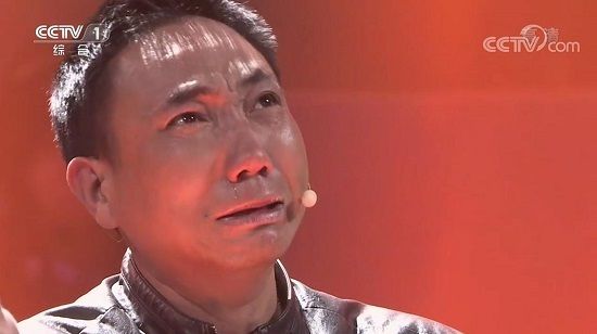 (桂宏正在《等着我》节目现场,听到儿子找到的消息后泣不成声)