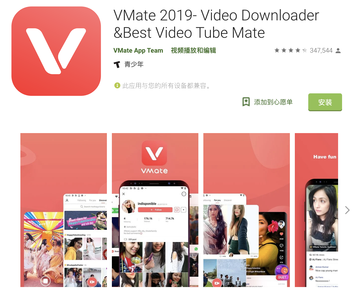据介绍,VMate 是一款面向印度年轻人的小视频内容社区产品,用简单、直观、易用的 App 帮助用户记录和分享生活。以平淡有奇、真实有趣的内容,营造社区氛围,帮助更多印度人都能平等地记录和表达。