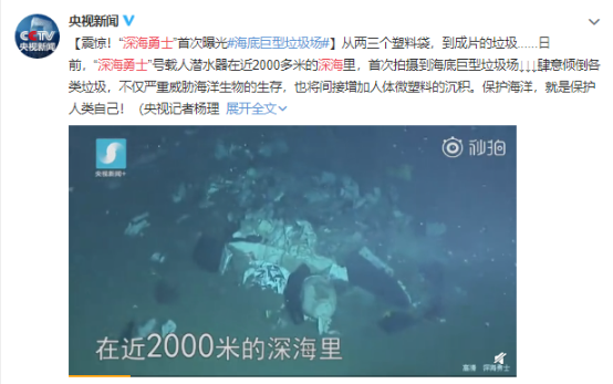 7月18日,央视新闻消息称,“深海勇士”号载人潜水器在近2000多米的深海里,首次拍摄到海底巨型垃圾场。肆意倾倒各类垃圾,不仅严重威胁海洋生物的生存,也将间接增加人体微塑料的沉积。