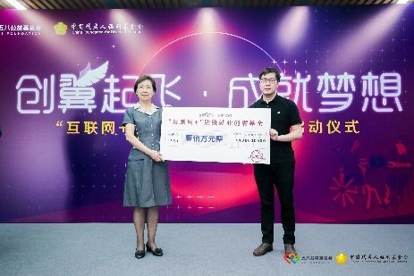 图:58 同城 CEO 姚劲波向中国残疾人福利基金会捐赠 100 万元成立创翼基金。