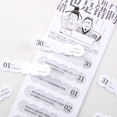 日历中每周一的治愈金句,字字珠玑,直击内心激发正能量,每周一页,全年 53 周时时陪伴。团队历时六个月,查阅上万条国内外网站内容,科学书籍。精选 312 条国内外知识达人研究总结的黑科技,人文,自然动植物相关的冷知识,极具话题性。