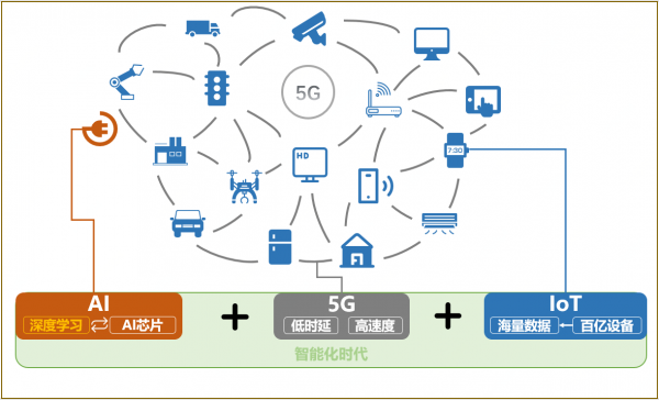 在智能化的世界,5G技术提供高速率(>1 Gbps),低延时(1ms)的基础网络服务,组建物联网(IoT,Internet of Things),大数据技术提供对万物互联产生的海量数据的整合能力,而AI技术则提供整个智能生态的计算与决策能力,深度学习技术是非常高效的实现方式,在过去10年,已被学术界和工业界反复证实,能够依靠各种模型算法达成比人类判断更精准,更快速的“灵丹妙药”。