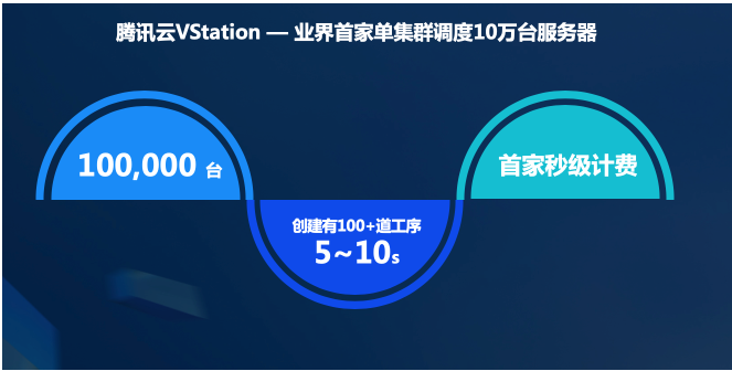 除了领先拥有高达十万台级服务器单集群调度能力外,VStation 创建实例的速度也大幅提升,平均创建 100+道工序的时间下降到 10 秒以下,可支持数万台虚拟机分钟级别创建,。腾讯云云服务器负责人李力表示,VStation 创建一台云服务器只需五到十秒,如果用户业务扩容需要一千台服务器,VStation 可以做到 30 秒左右,企业计算资源需求可以实现快速交付。