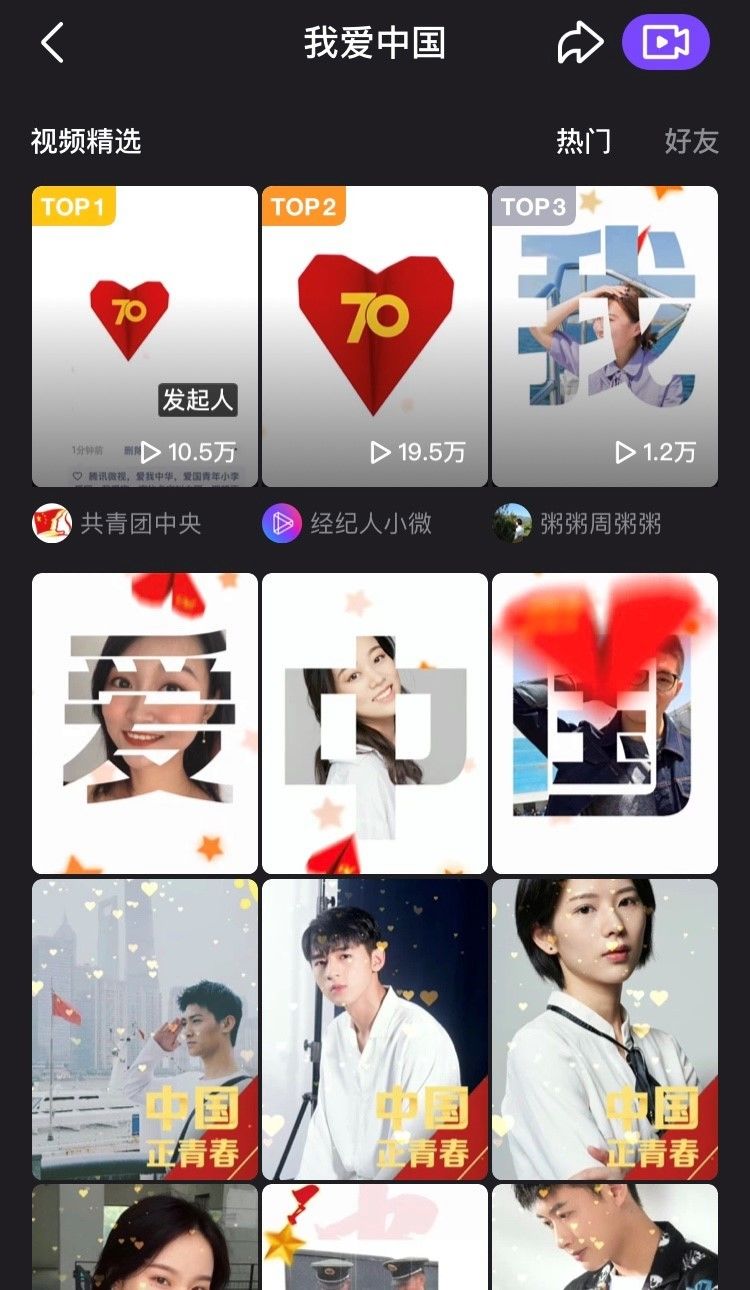 用户也可以在腾讯微视里搜索 #我爱中国# 话题,观看其他网友拍摄的同款视频。